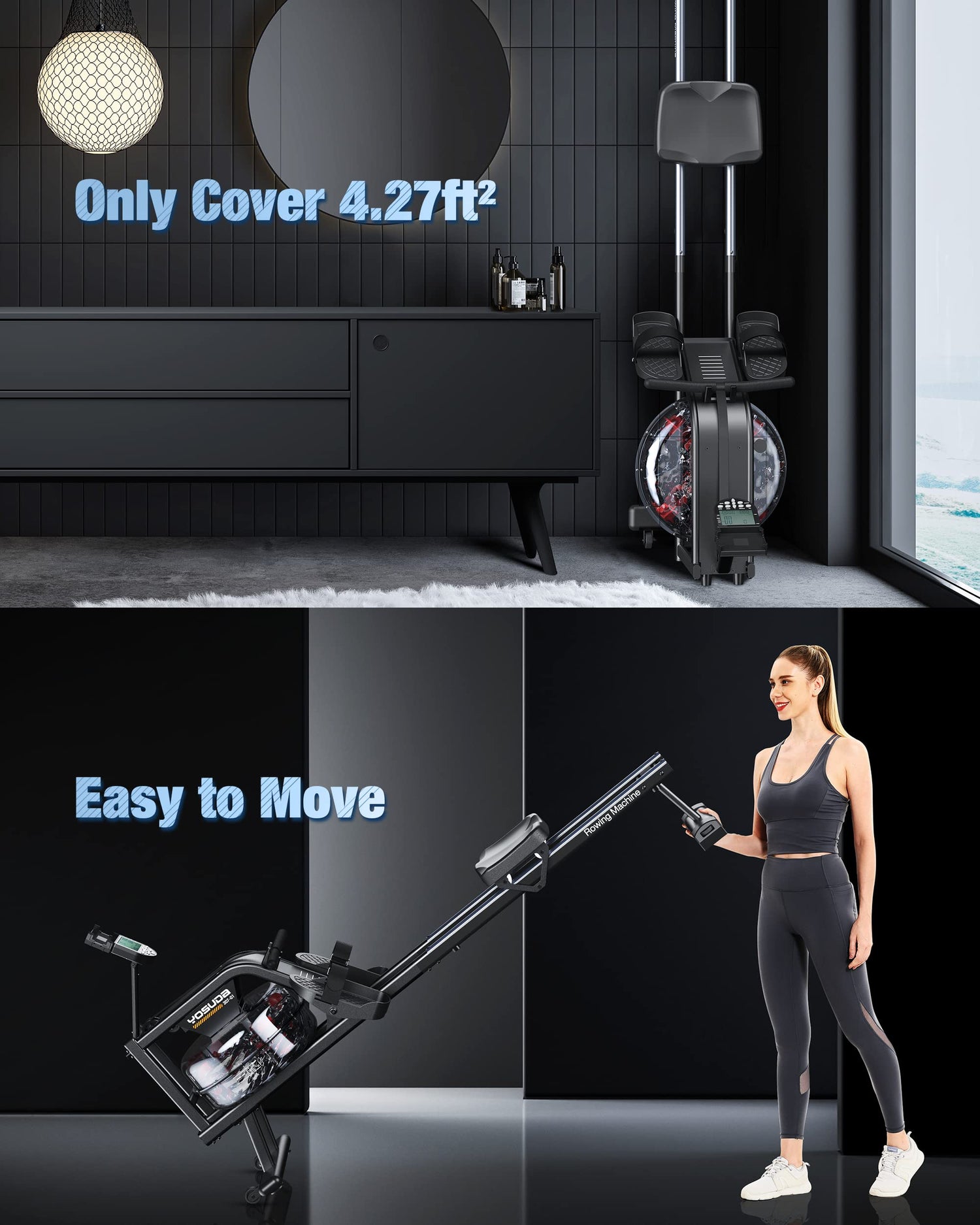 With the most compact design, our rowing machines will fit almost any corner in your home, apartment, or fitness room( Only Covers 4.27 ft²). With two wheels, women and seniors can easily move it anywhere